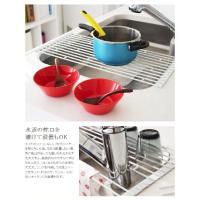 キッチンの限られたスペースでは、水切りカゴって意外と邪魔。食洗機などを使用していても、使用不可のアイテムを洗って置けるスペースを確保したい。モノトーンのスチールフレームで作られたシンプルフォルムが素敵な「 tower 」シリーズの『 折り畳み水切りラックS 』は、そんな方にぴったりのアイテム。その名の通り、使うときにはシンクに広げ、使わない時には折り畳むことができるんです。スチールがあみだクジのような形状をしているので、間に挟み込めば洗ったお皿を立てて水切り可能。お料理準備の時には洗った食材の水切りに、調理中にはまな板を乗せての作業スペース、調理後は大きな鍋やお皿や布巾の乾燥スペースにと大活躍。両サイドのシリコンキャップがシンクにしっかりとくっつき、ズレ落ちの心配もありません。こちらは奥行約38cm以下に対応したコンパクトなSサイズ。奥行54cm以下に対応した大きなLサイズもあります。