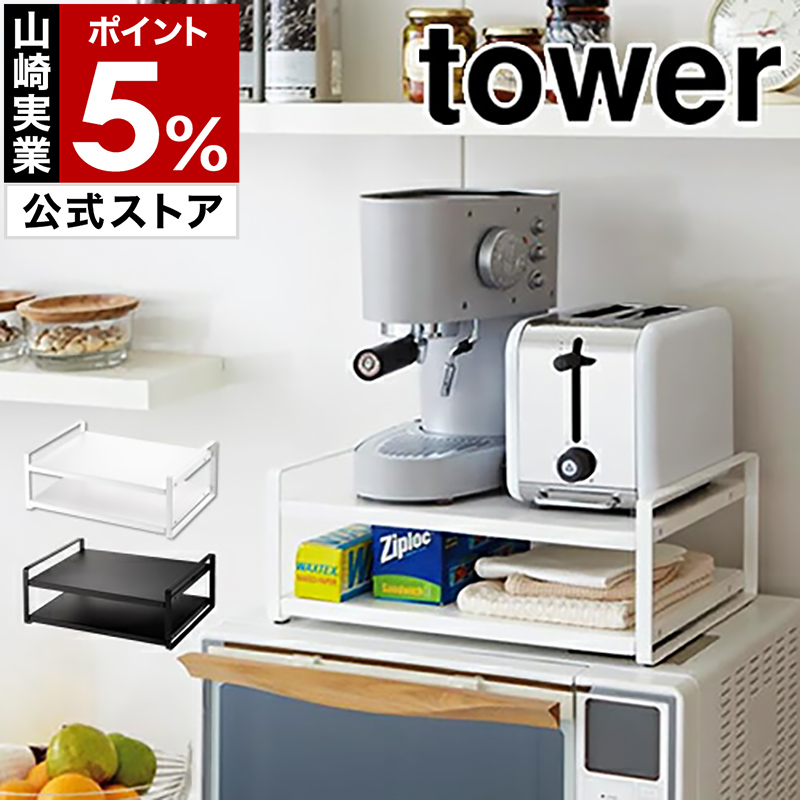 [ レンジ上ラック タワー ]山崎実業 tower レンジ 冷蔵庫 上 ラック レンジラック キッチン収納 おしゃれ yamazaki 公式 ブラック ホワイト 7938 7939
