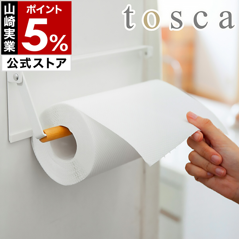 特典付[ tosca 片手でカット マグネットキッチンペーパーホルダー ]片手 トスカ 片手で切れる マグネット 木製 冷蔵庫 山崎実業 yamazaki 公式 ホワイト 3530