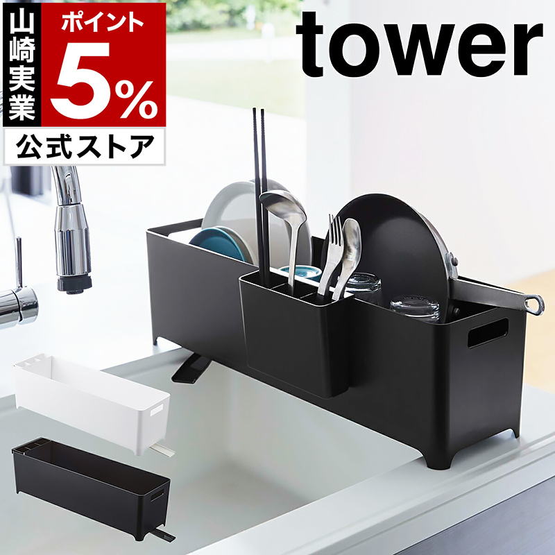 特典付[ スリム水切りバスケット タワー ロング ] 山崎実業 tower 水切りラック スリム 水切りかご 水切りトレー 水切りカゴ 卓上水切りトレー 4314 4315