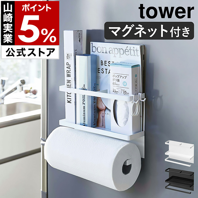特典付[ マグネットラップ&キッチンペーパーホルダー タワー ]山崎実業 tower マグネットキッチンペーパー&ラップホルダー ラップホルダー 磁石 4396 4397