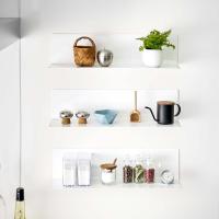 『 tower( タワー )マグネットキッチン棚 ワイド 』は、マグネットの付く壁などに取り付けられるウォールラック。幅が広いので、調味料やキッチン回りの小物類がすっきり片づけられます。奥に向かって傾斜が付いているため、置いたものが滑り落ちにくくなっているのも◎。L字型のシンプルなデザインはどんな場所にもなじみやすく、収納はもちろん飾り棚として使うのもおすすめです。