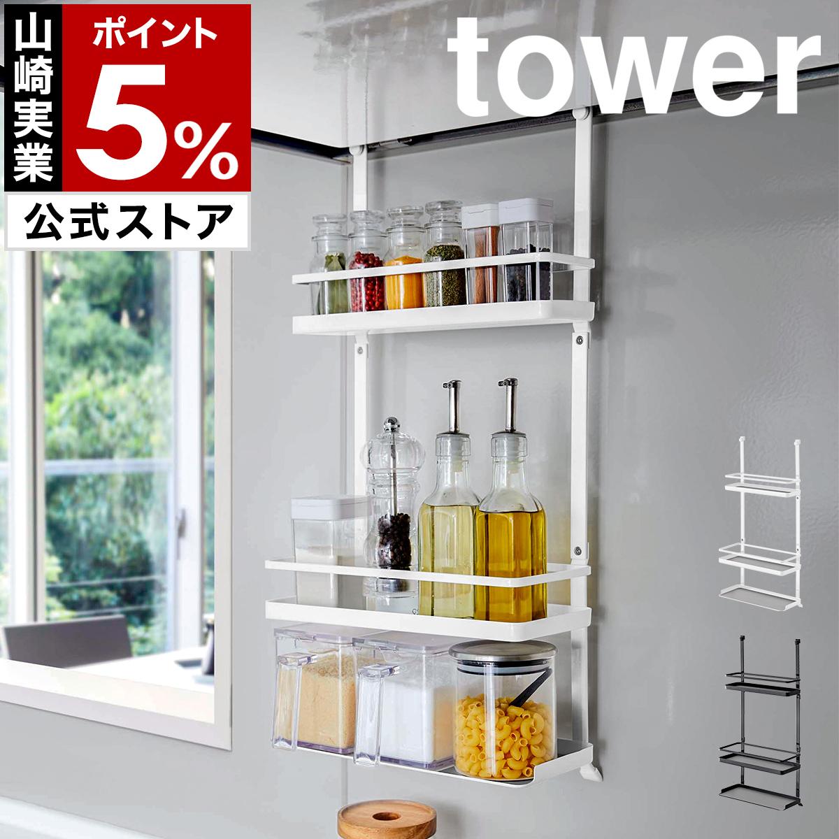 [ レンジフード調味料ラック 3段 タワー ]山崎実業 tower キッチン収納 レンジフード 調味料ラック キッチン 収納 換気扇 yamazaki 公式 4836 4837