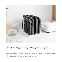 置き場所に困るキッチントレーや焼き網などが収納できる『 tower( タワー )トレースタンド 』。まとめて立てて片づけられるので、キッチンボードや調理台の限られたスペースにもすっきり収まります。頑丈なスチール製で安定感があるため、ホットプレートの替え天板やオーブン天板など重さのあるものや、まな板の定位置にするのもおすすめ。シンプルで扱いやすいデザインもポイントです。