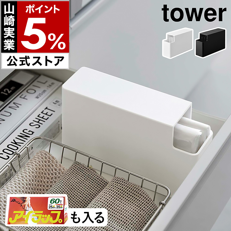[ スリムプラスチックバッグケース タワー ]山崎実業 tower 収納ケース ストッカー 収納 ホルダー ケース yamazaki 公式 ホワイト ブラック 3976 3977
