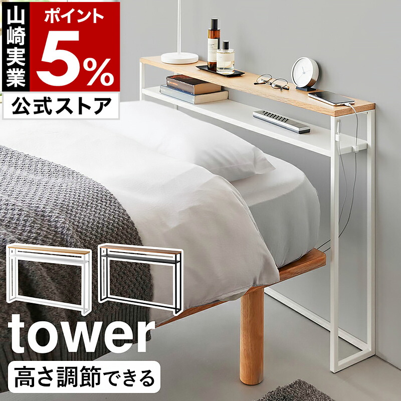 特典付[ 棚板が動く後付けヘッドボード タワー ]山崎実業 tower 後付け ヘッドボード 高さ調節 ラック 枕元 収納 yamazaki 公式 ブラック ホワイト 1682 1683