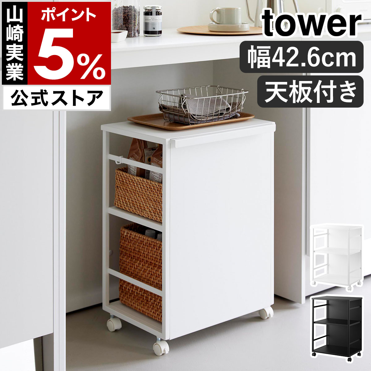 2大特典[ 目隠しワゴン タワー 天板付き ]山崎実業 tower キャスター付 目隠し ワゴン 北欧 おしゃれ yamazaki 公式 モノトーン ブラック ホワイト 8466 8467