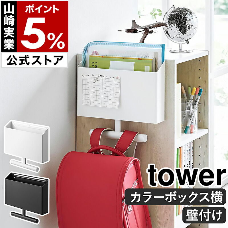 [ ウォールファイルボックス&ランドセルハンガータワー石こうボード壁対応 ]山崎実業 tower yamazaki 公式 ブラック ホワイト モノトーン 1865 1866