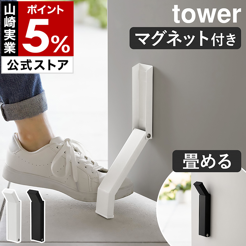 [ マグネット折り畳みドアストッパー タワー ]山崎実業 tower ドアストッパー マグネット 折り畳み 強力 マンション 鉄製ドア yamazaki 公式 3720 3721