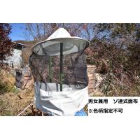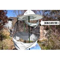 (4)面布(ソ連式)。頭や顔を守るために頭から被るネットです。ソ連式は全面の網が開きます。作業中の水分補給などがスムーズに行えます。