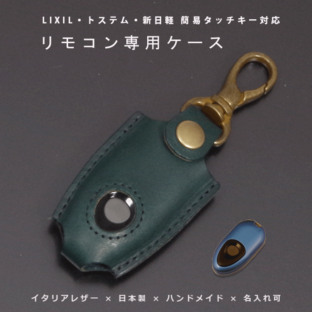 LIXIL(リクシル)・トステム・新日軽の玄関ドア用簡易タッチキー/リモコンキーに対応した本革キーケースです。キーをキズや汚れから保護し、ケースに入れたまま施解錠操作が可能。滑りにくく落下防止にも役立ち、玄関キーケース、スマートキーケース、リモコンキーケースとして日常使いから新築祝い・引っ越し祝いのギフトまで幅広く使用できます。