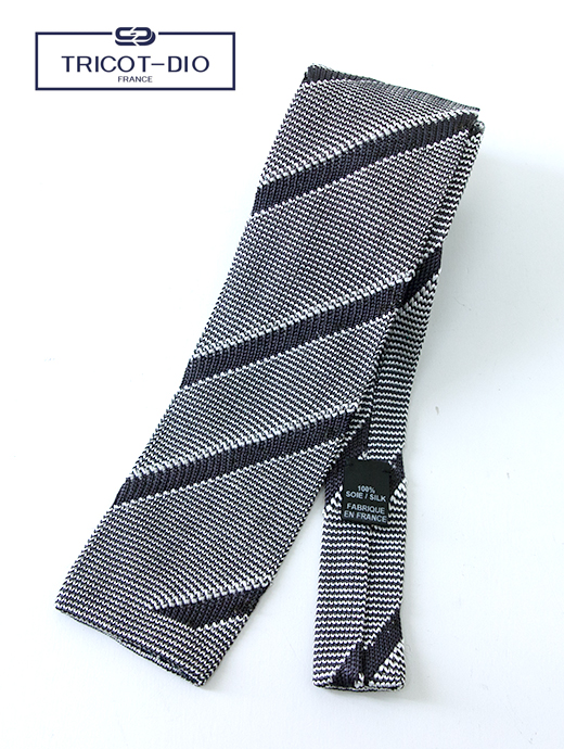 フランスの老舗ニットタイ専業ブランド「Tricot-Dio/トリコ・ディオ」より、斜めに入るストライプが特徴のジャカードニットタイが入荷しました。