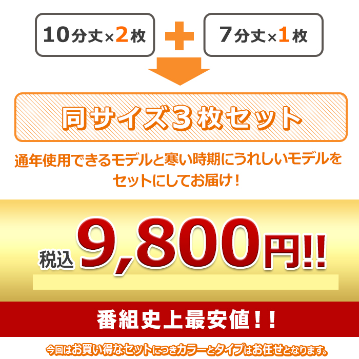 10分丈×2枚、7分丈×1枚(レギュラーモデルとあったかモデルの組合せ)の合計3枚