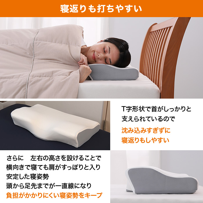 寝返りも打ちやすいT字形状で首がしっかりと支えられているので 沈み込みすぎずに寝返りもしやすい