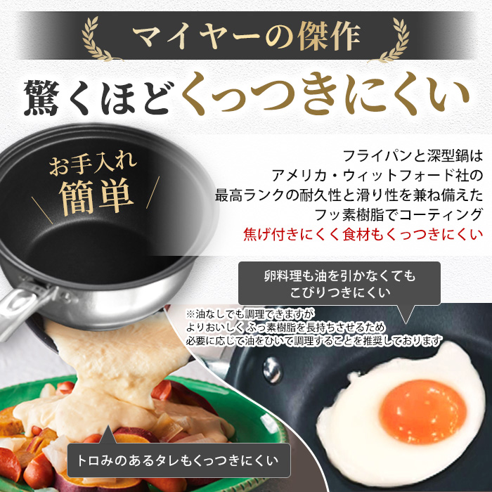 マイヤーの傑作!驚くほどくっつきにくいフライパンと深型鍋はアメリカ・ウィットフォード社の