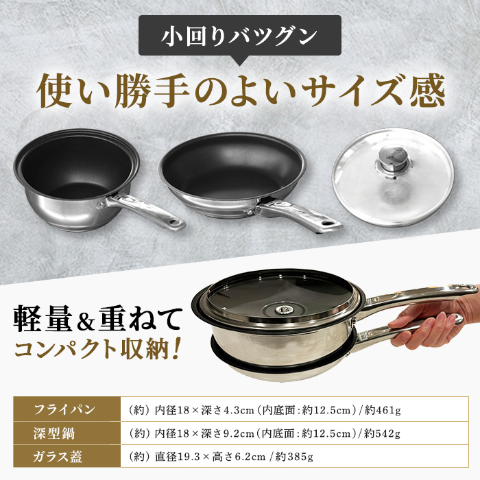 フライパンと深型鍋を重ねて無水調理もフライパンがぴったり重なるサイズで