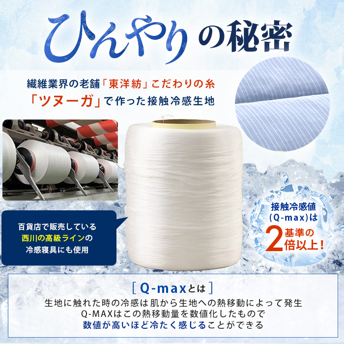 百貨店で販売している西川の高級ラインの涼感寝具にも使われている「ツヌーガ」使用