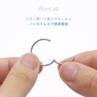 | 特徴 | その1.金属アレルギー対応で、つけっぱなしに適した素材 その2.傷がつきにくい その3.サビ、変色に強い |
