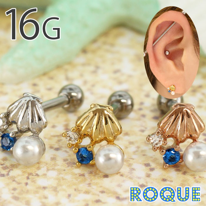 | [アイテムキーワード] ボディピアス 16G 軟骨ピアス 軟骨 ピアス 軟骨用 ストレートバーベル 貝殻 貝 シェル 夏 海 パール ジュエル ボディーピアス |