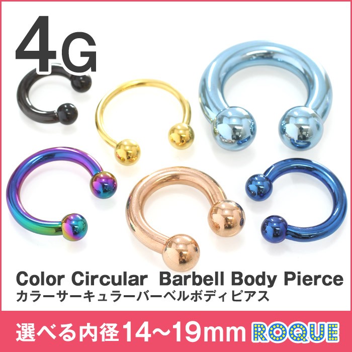 | [アイテムキーワード] ボディピアス 4G 耳ピアス 耳たぶ ピアス 耳用 サーキュラーバーベル ノーマル スタンダード シンプル カラー ボディーピアス |