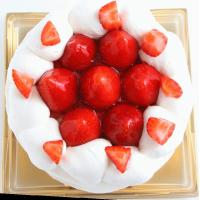 生クリームをたっぷり絞りった大人気の苺のケーキ。
