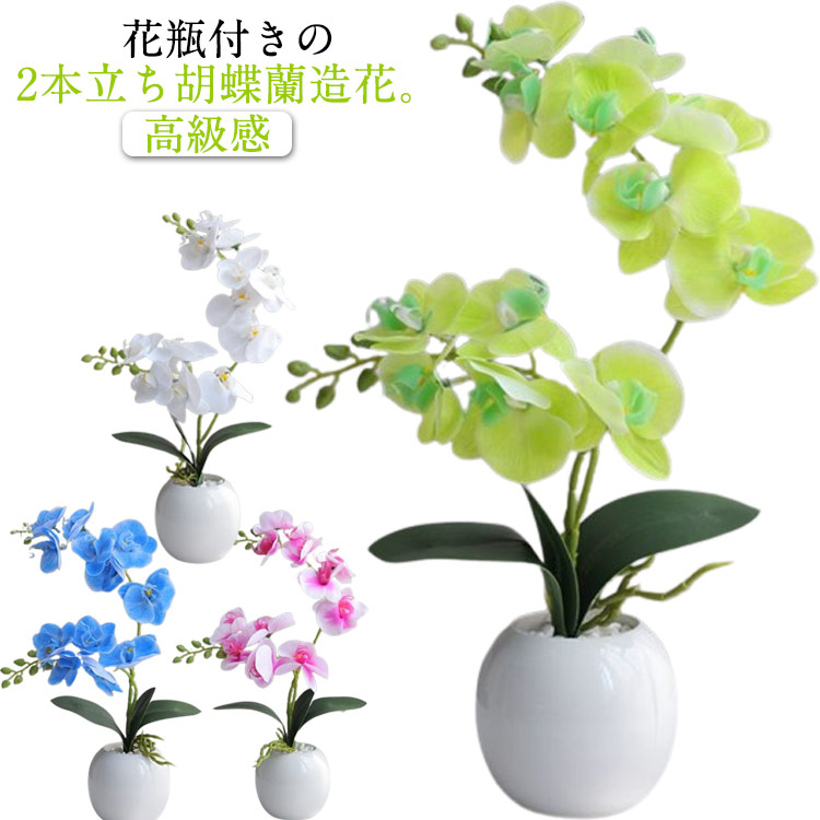 花瓶付きの2本立ち胡蝶蘭造花。 ●ギフト・プレゼント・・・ 胡蝶蘭(コチョウラン)の花言葉「幸運が飛んでくる」がピッタリだとご好評いただいています。 お祝い( 開業祝い 開院祝い 開店祝い 開設祝い 新築祝い 引越し祝い 結婚祝い 社長 就任祝い 退職祝い 栄転 周年祝い 当選祝い 叙勲祝い 誕生日 長寿 還暦祝い 喜寿 米寿 傘寿 ) 等 シーズンギフト( お正月 バレンタイン 母の日 父の日 敬老の日 ) 様々なシーンでご利用いただいています。 ●御供として・仏壇用として・・・ 普段の仏壇に飾る用としても人気です。 また、お供え用としても、お相手様から「水替えが手間いらず」だとご好評いただいています。 ここ最近は白い花でなくとも、故人が好きだったカラーのアーティフィシャルフラワーを贈られることも多くなりました。 お盆やお彼岸、一周忌などの年忌法要にあわせて送られることも多いアレンジです。 ●ご自宅用・職場のインテリアアイテムとして 旅行に行くときも水やり不要で枯れない花である「アーティフィシャルフラワー」はお手入れ簡単なのでご自宅や職場のアクセントにもおすすめ。 衛生的ですので病院や介護施設などのワンポイントとしてもご利用いただいています。 | |