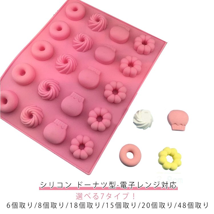 シリコン ドーナツ型 6個取り/8個取り/18個取り/15個取り/20個取り/48個取り ケーキ型 製菓道具 シリコン製 オーブン 電子レンジ対応 ミ
