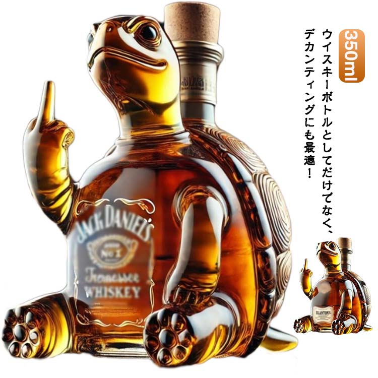 | ウイスキーボトルとしてだけでなく、デカンティングにも最適! ワインやウイスキーの風味を最大限に引き出し、保存から飲み頃まで、お酒を楽しむあらゆるシーンでご活用いただける便利なアイテムです。 亀をモチーフに「中指を立てたユーモラスなデザイン」が圧巻! バーカウンターや自宅のライブラリー、ウイスキーキャビネットに置くだけで視線を一瞬に惹きつけ、友人やゲストとの会話を弾ませるネタバレです。 | |