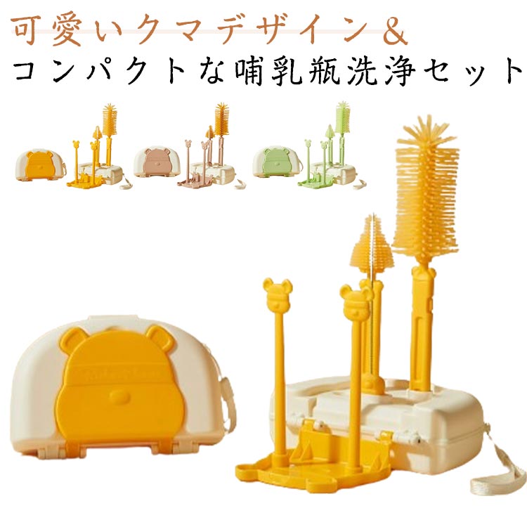 | 【可愛いクマデザイン&コンパクトな哺乳瓶洗浄セット】 哺乳瓶ラック・哺乳瓶ブラシ・乳首ブラシ・ストローブラス・収納ボックスの5点セットです。 コンパクトで軽量なので、お出かけや旅行などに大活躍!面倒な用意の手間も省けます。 【傷つきにくいシリコンブラシ】 洗浄ブラシは、哺乳瓶などを傷つけない柔らかいシリコンブラシになっています。 ブラシの柄は取り外せてコンパクトに収納できます。 【哺乳瓶用洗剤詰め替えボトル付き】 セットには、PE素材の軽量で環境にやさしい30mlのディスペンサーボトルが付いているので持ち運びにとても便利です。 【水切りラックが付いていて便利】 哺乳瓶洗浄後は、水切りラックに干して乾燥できます。 また蓋の部分は分解して洗えるのでとても衛生的にご使用いただけます。 | |