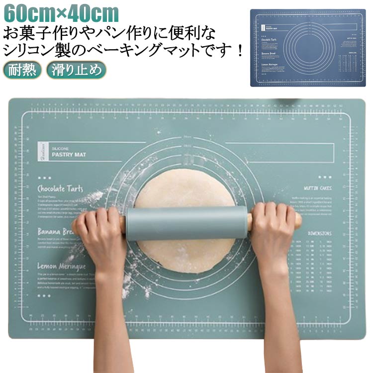 | 60cm×40cm!お菓子作りやパン作りに便利なシリコン製のベーキングマットです! パン生地をスムーズにこねたり、伸ばしたりする事ができるので、打ち粉が少なくてすみます! ピザ生地を伸ばしたり、餃子の皮を伸ばすときにも便利! 様々な目盛り入りで作業する時に生地の大きさを決める目安にすることができます。 生地を捏ねるときに移動せず作業台にぴったりくっつきます。 丸洗いでき、汚れも落ちやすく洗って繰り返し使えてとってもエコ。 とても柔軟性があるので、くるくると畳んで収納できて省スペース! クッキングシート、オーブンマットとしてもお使いになれます。 | |