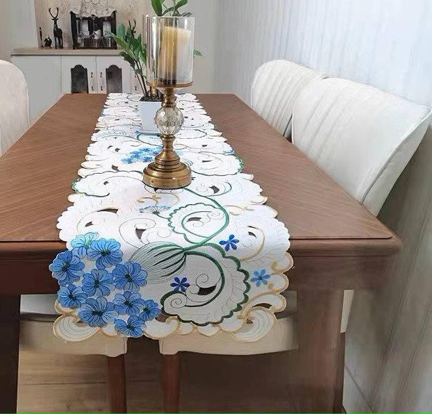 アメリカンブルー テーブルランナー40X175cm 刺繍系 爽やかで大人気