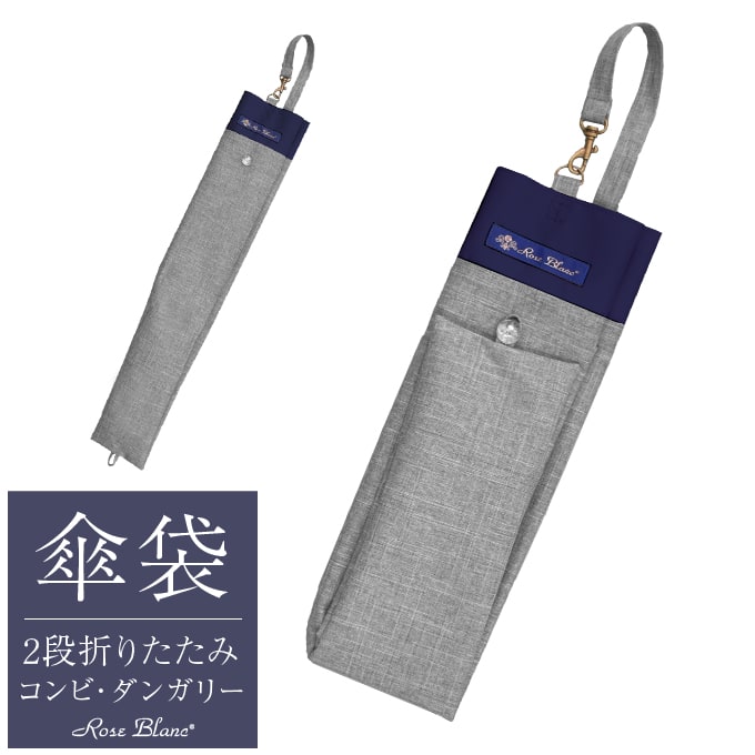 【Rose Blanc 傘袋】 2段50cm 折りたたみ傘用 傘袋 専用傘袋 2WAY コンビタイプ ダンガリー