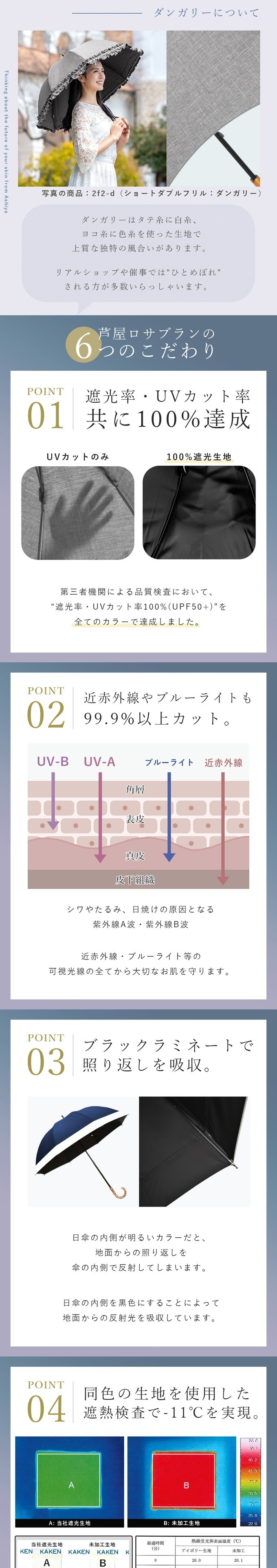 遮光にこだわりぬいた日本製生地 低コストの海外製加工生地では例え検査機関の証明が出たとしても、生地全体として安定した遮光率を維持することに限界があり、当社は日本製の加工生地を使用しています。 機能性とファッション性を追求 当社で使用している生地は遮光率はもちろんのこと、内側のブラックラミネート加工が照り返しからお肌や眼を守り、お洒落にもこだわっています。濡れたり汚れたり摩擦しても遮光率は落ちず、生地が破れない限り遮光性能をキープします。 上質かつ上品な色出しやバリエーションは、紫外線対策をしながらファッションも楽しんでいただけるようにデザインしています。 また、より遮光することを意識した深張りがデザイン的にも大好評です。 海外からのご注文も増加! 海外在住の邦人の方だけでなく、多くの外国人の方からもご注文をいただいており、ロサブランブランドはワールドワイドにご支持が拡がっています。 | 品質とご理解いただきたい点 |