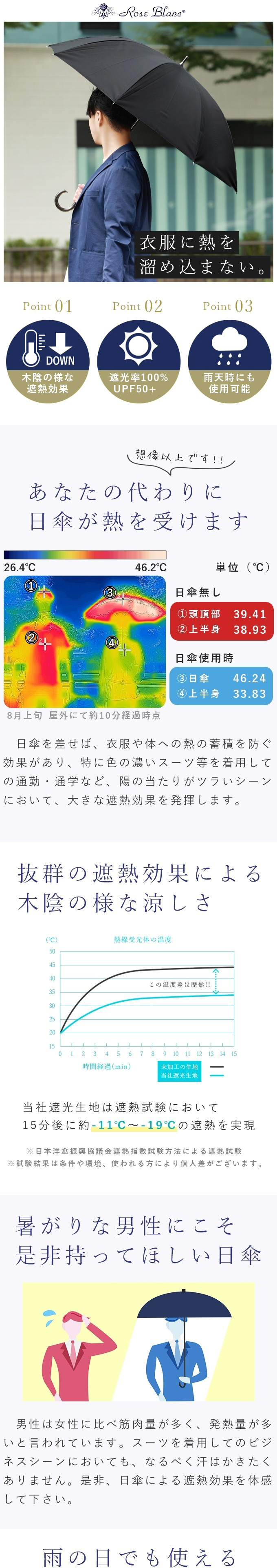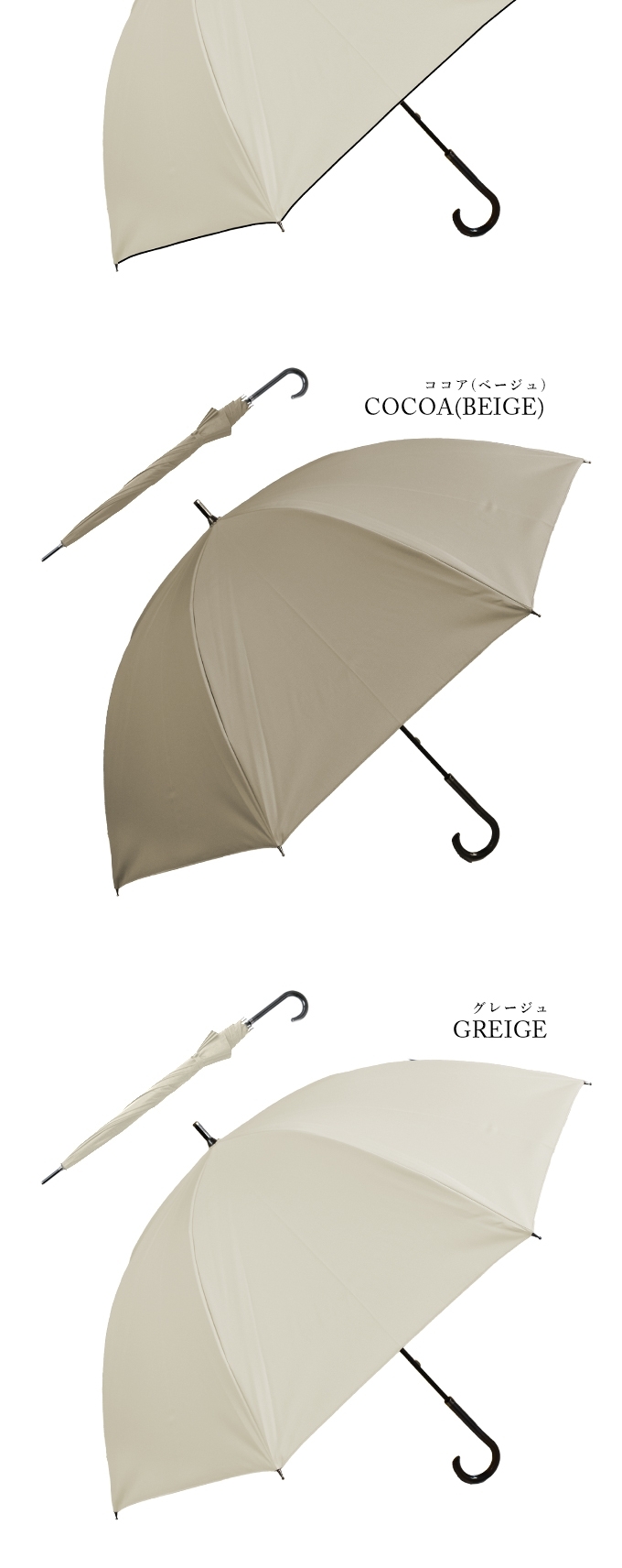 | ・サイズ感と軽量さでゴルフ傘としても◎。 ・落ち着きあるスタンダードカラー。 ・淡色もすべて遮光率100%の試験をクリアで同様に安心の100%遮光。 ・撥水加工で雨の日もご利用可能。 【ご注意】 竹手元を採用している商品につきましては、天然素材のため、色/節の数/デザイン等に個性がございます。濡れた後は回転させて水滴を飛ばさず、タオル等で雨粒を拭き取り、陰干ししてからおしまい下さい。また、強風時や極度の強雨の場合はご使用をお控え下さい。生地を骨に挟まないよう開閉ください。自転車/ベビーカー等に固定したり、ステッキとしてのご使用は危険ですのでおやめください。ハンドクリームや日焼け止めクリーム等が本製品の生地・手元等の色落ちの原因になる場合がありますのでご注意下さい。 ※初期不良の受付はご利用前に限ります。初期不良とはご使用になられる前の、初回開封時に認められる不具合の事です。商品画像と実物には色の差がある場合がございます。ご了承の上ご購入下さい。物流システムの関係上、ご注文後の商品変更・キャンセルはご遠慮ください。 | スペック |