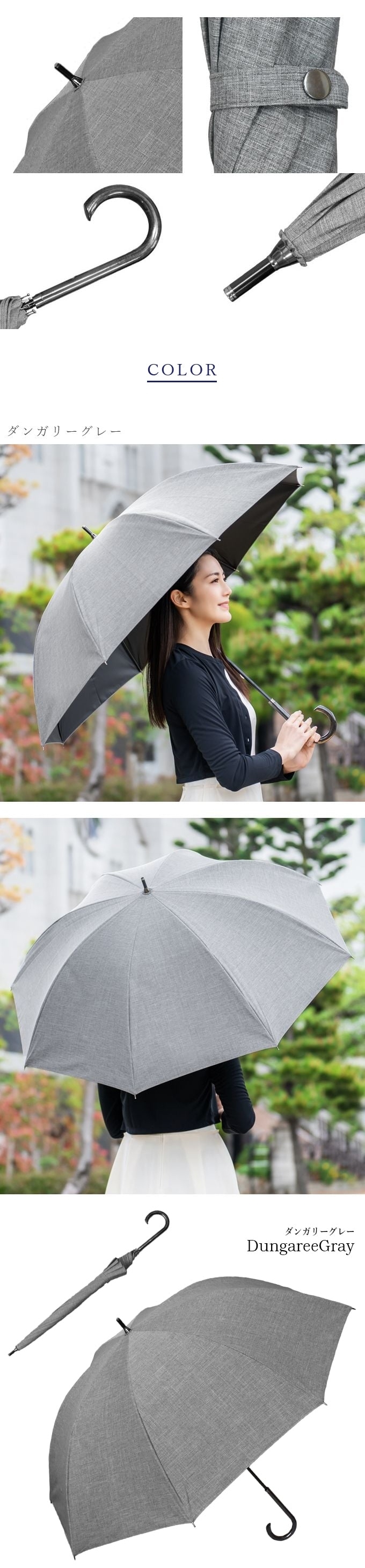 | ・サイズ感と軽量さでゴルフ傘としても◎。 ・ロサブラン大人気のお洒落で高級感あるダンガリーシリーズ。 ・淡色もすべて遮光率100%の試験をクリアで同様に安心の100%遮光。 ・撥水加工で雨の日もご利用可能。 【ご注意】 竹手元を採用している商品につきましては、天然素材のため、色/節の数/デザイン等に個性がございます。濡れた後は回転させて水滴を飛ばさず、タオル等で雨粒を拭き取り、陰干ししてからおしまい下さい。また、強風時や極度の強雨の場合はご使用をお控え下さい。生地を骨に挟まないよう開閉ください。自転車/ベビーカー等に固定したり、ステッキとしてのご使用は危険ですのでおやめください。ハンドクリームや日焼け止めクリーム等が本製品の生地・手元等の色落ちの原因になる場合がありますのでご注意下さい。 ※初期不良の受付はご利用前に限ります。初期不良とはご使用になられる前の、初回開封時に認められる不具合の事です。商品画像と実物には色の差がある場合がございます。ご了承の上ご購入下さい。物流システムの関係上、ご注文後の商品変更・キャンセルはご遠慮ください。 | スペック |