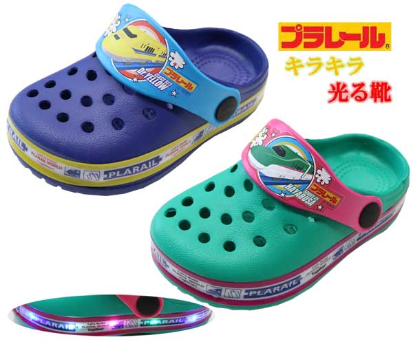 光る靴 プラレール サンダル キッズシューズ 子供靴 E5系はやぶさ E7系かがやき キッズサンダル 男の子 サボ 光るサンダル 16310 16311 クロック 新幹線