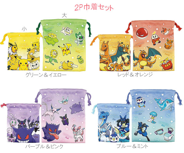 ポケットモンスター2P巾着セット グラデーション 大小2枚入り 巾着袋 ポケモン ピカチュウ ニャオハ ホゲータ クワッス ティーズファクトリー 巾着 5530371GY