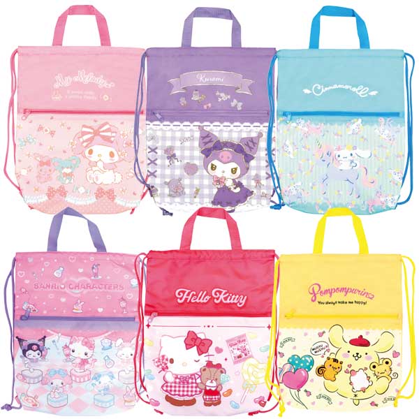 サンリオ 巾着ナップサック ナップサック ハローキティ マイメロディ クロミ シナモロール ポムポムプリン 約H39×W32×D6cm サンリオキャラクターズ