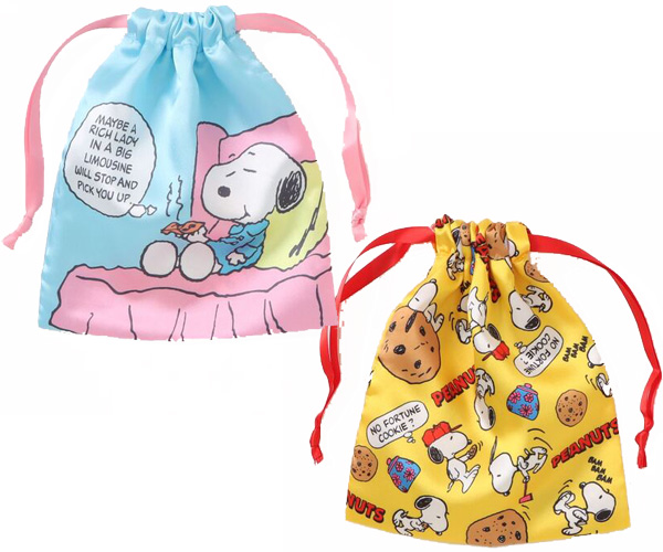 スヌーピー リボン巾着 巾着袋 巾着 クッキー ベッド サテン生地 ピーナッツ PEANUTS 巾着袋 巾着 お弁当 遠足 行楽 給食 ランチ SN2041 SN2042