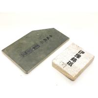 164gの完成品入。サイズは箱の外寸、重さは箱と鍛え原石込みの重さ。伊豫國産や正本山山城國産 中〜上級銘砥に、産地偽装や模造品対策として採鉱者自ら銘を手で書き入れたもの。画像通りの鍛え落ちは、余白に入れて封。原石落ちには銘は書き込んでませんので、各自実際に触れてみて物性で判断願います。競技的要素修練的要素含む前衛的な方向け。