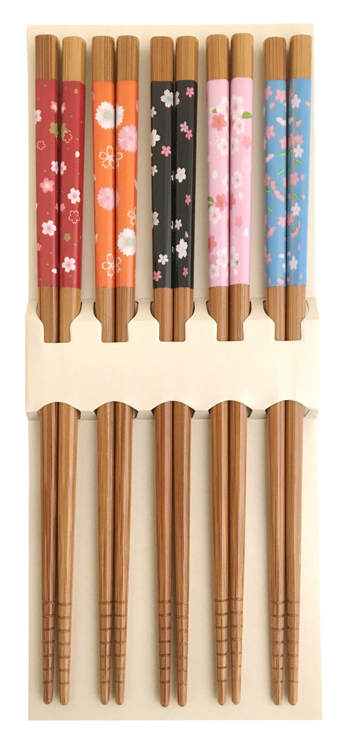 商品名:アオバ 箸 食洗機対応 天然木 スス竹 桜ごよみ 5膳 22.5cm