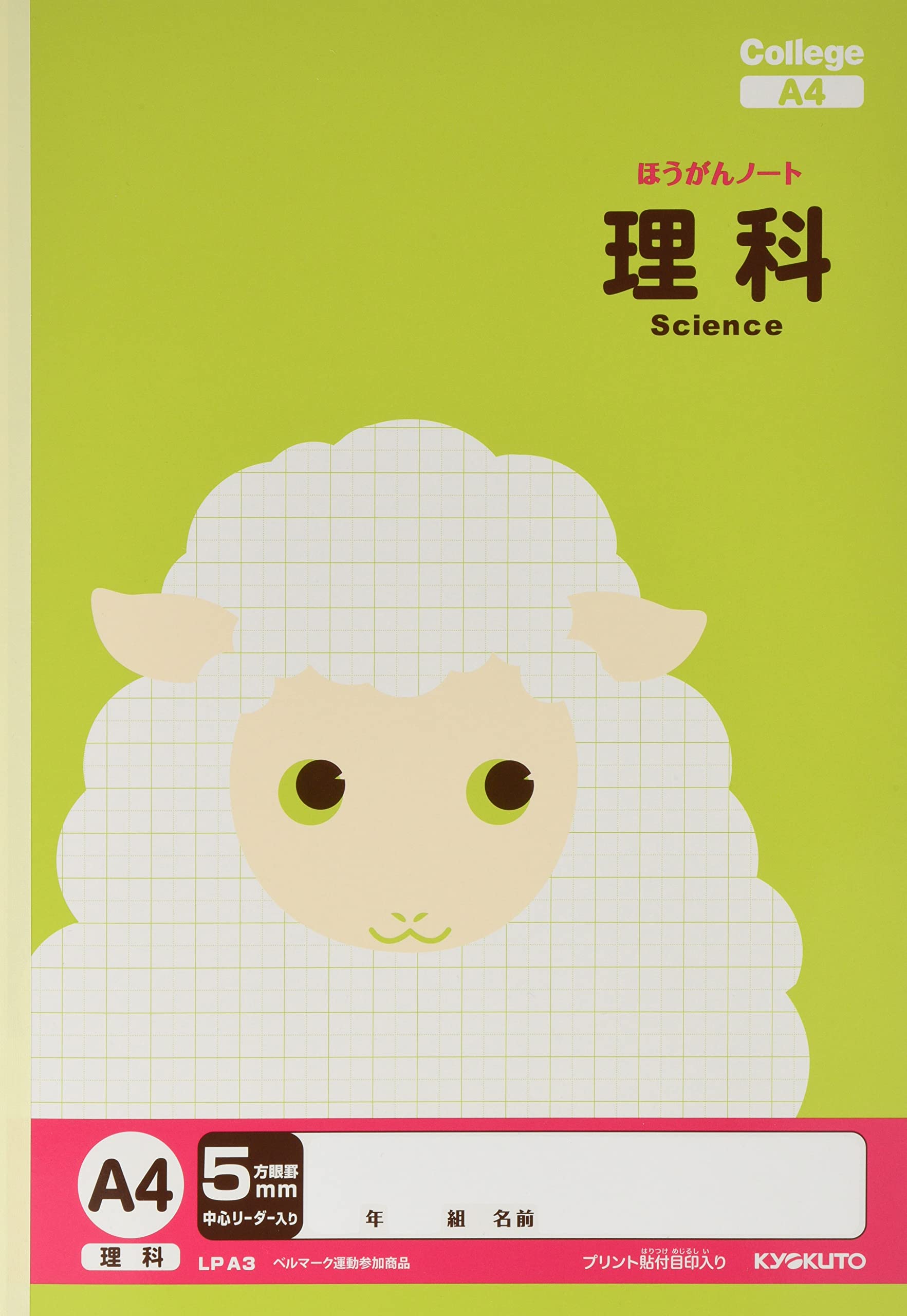 商品名:キョクトウ 学習帳 カレッジアニマル 5mm方眼 理科 A4 10冊 LPA3