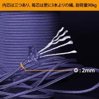 ?【90KGの耐荷重】本製品は内芯3芯で耐荷重約90KG。3本のナイロン糸をより合わせて作ったインナーコードを3本束にした内芯を耐摩耗性の外皮で覆っています。