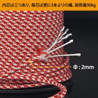 ?【90KGの耐荷重】本製品は内芯3芯で耐荷重約90KG。3本のナイロン糸をより合わせて作ったインナーコードを3本束にした内芯を耐摩耗性の外皮で覆っています。