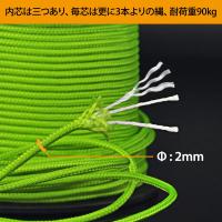 ?【90KGの耐荷重】本製品は内芯3芯で耐荷重約90KG。3本のナイロン糸をより合わせて作ったインナーコードを3本束にした内芯を耐摩耗性の外皮で覆っています。
