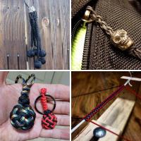 3:自在金具と利用の場合は:本品の太さは細いので2mmです、自在金具と利用便利です。テントの設営はもちろんん、ブレスレット、アクセサリー製作として活躍する優れ物です。パラコードを使用したアクセサリー製作、ナイフの柄に巻きつけたり使用されます。