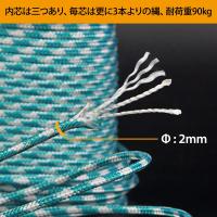 ?【90KGの耐荷重】本製品は内芯3芯で耐荷重約90KG。3本のナイロン糸をより合わせて作ったインナーコードを3本束にした内芯を耐摩耗性の外皮で覆っています。