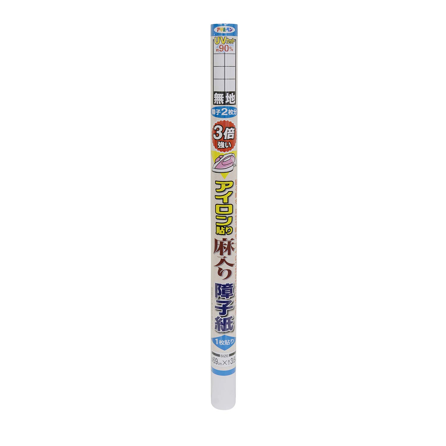 商品名:アサヒペン 障子紙 UV 3倍強い麻入りアイロン障子紙 幅69cm×長さ3.6m 品番6131 無地 アイロン貼り 麻の風合い U Vカット90%カット 色あせ 変色防止 団地サイズ障子4枚分 日本製