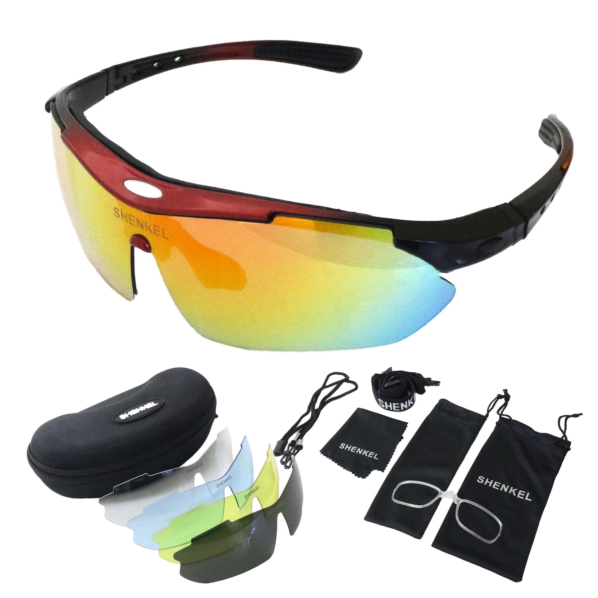 [SHENKEL] シェンケル シューティングサングラス 偏光レンズ1枚 強化レンズ4枚 フレーム赤