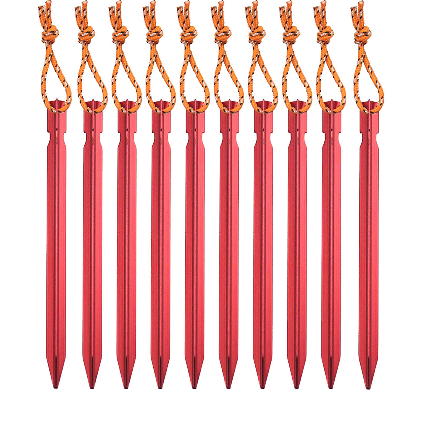 商品名:SHULLIN テントペグ 18 cm 軽量 アルミ テント ペグ テントステーク 反射コード付き 砂浜 硬い土 草地 ハイキング 登山用 キャンプペグ キャンプ用具 10枚入り (レッド)
